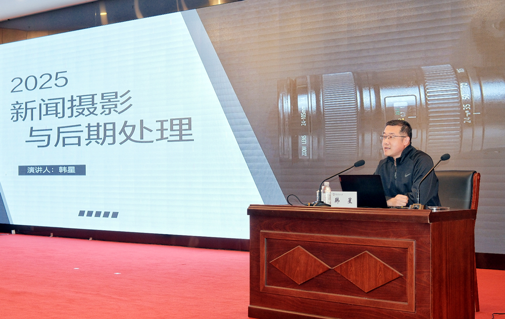 仪式后,举办了两场专题辅导报告。青岛日报社科教卫全媒体中心资深摄影记者韩星受邀作题为《新闻摄影技巧及后期处理》的辅导报告;凤凰网青岛频道新媒体运营总监刁博雅受邀作题为《AI赋能新媒体运营应用》的辅导报告。