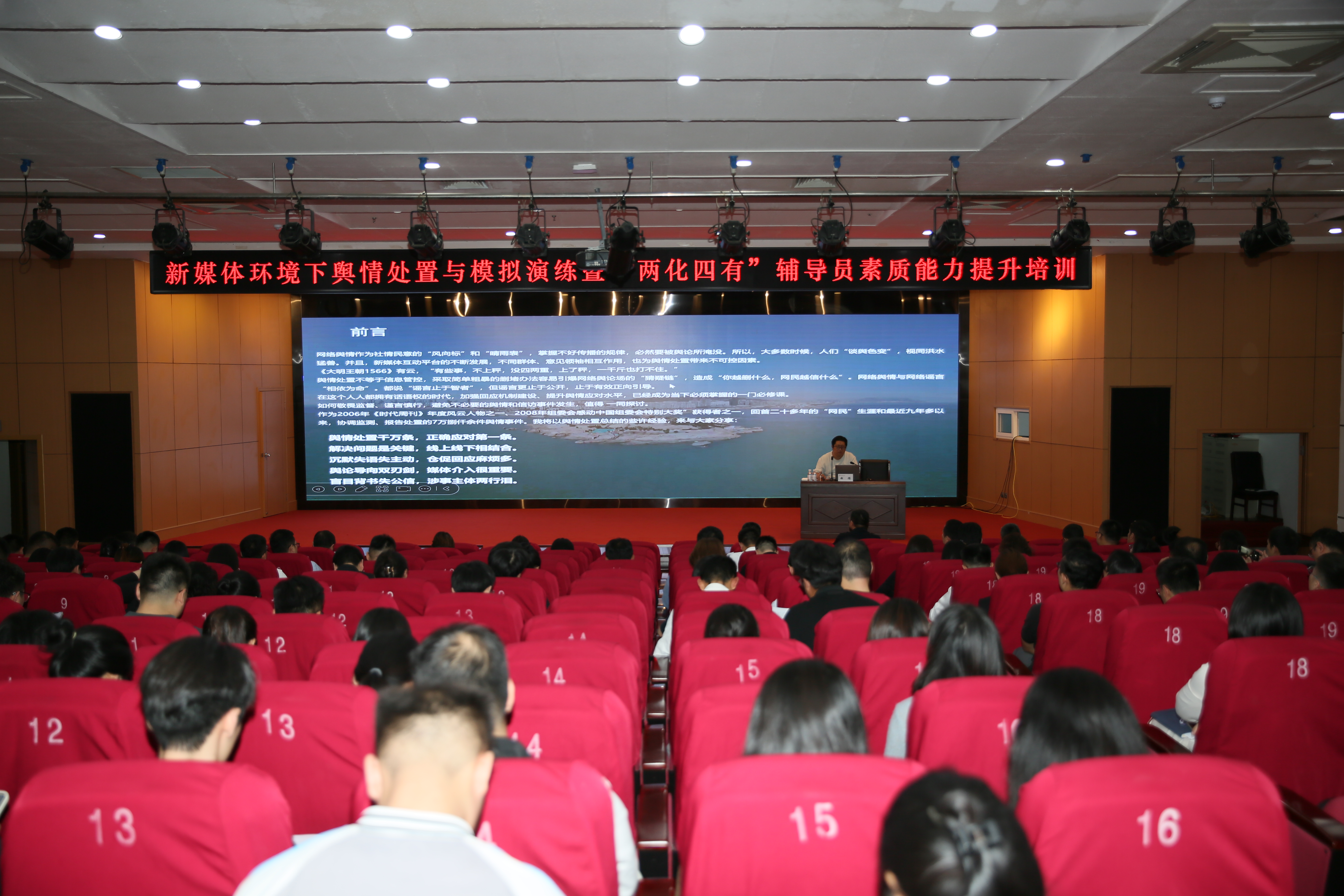 为增强学校干部的舆情风险意识、舆情处置能力和舆情应对实战经验,9月26日,学校举行新媒体环境下舆情处置与模拟演练暨“两化四有”辅导员素质能力提升培训会,邀请山东省互联网传媒集团(大众网青岛)编辑记者 、舆情分析师曲顺来校作专题培训。